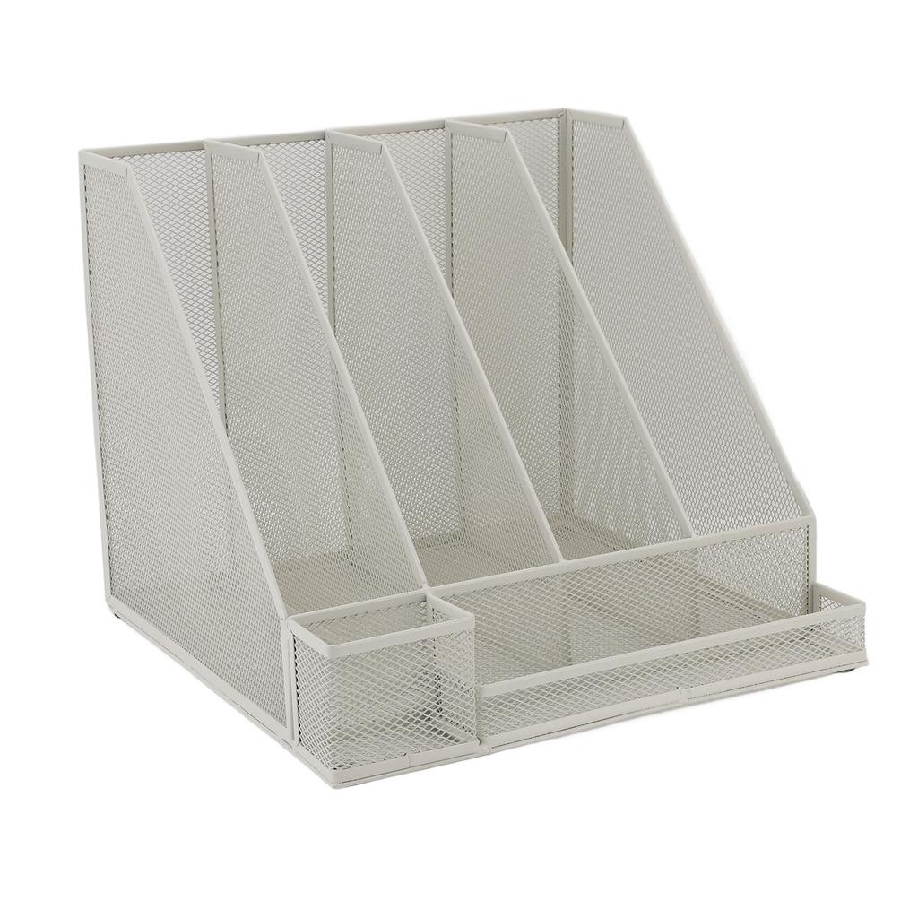 Desktop File Organizer Iron Mesh White Multi Layer Vertical File Folder Organizer for Study Office