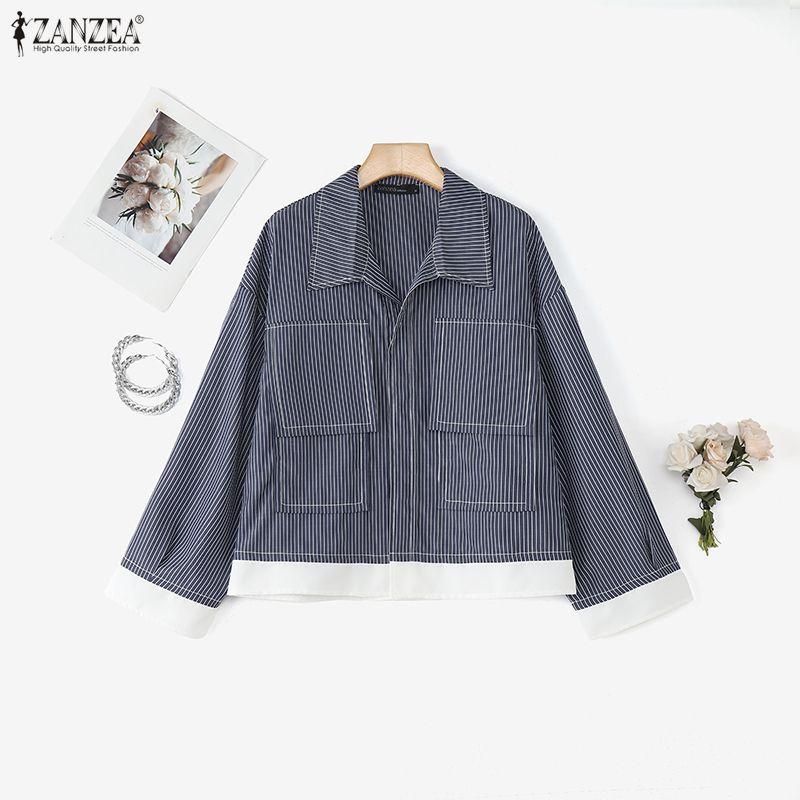 ZANZEA Women Casual Turn Down Collar Loose Long Sleeve Stripe Blouse