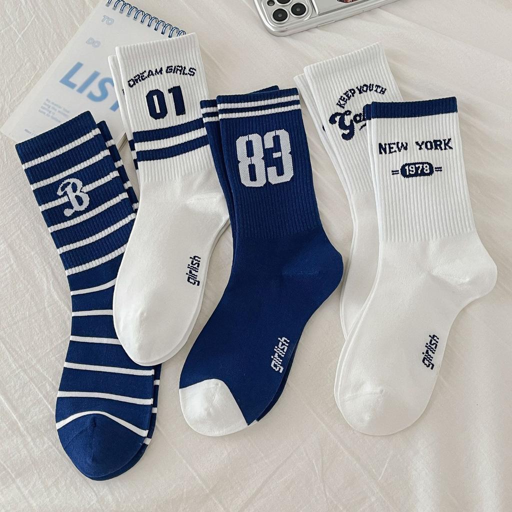 Ladies Autumn and Winter New Letter High Rubber Stripe Two Bars Sport Tube Cotton Socks