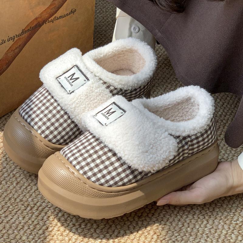 2025 New Cotton Slippers Warm In Autumn and Winter Retro Plaid Indoor Home Thick Sole Plush Outer Cotton Shoes