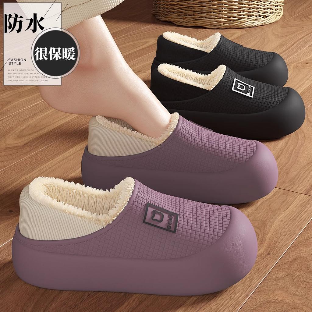 Waterproof Cotton Slippers Autumn and Winter 2025 New Stepping On Shit Feeling Indoor Home Non-slip Plush Bag and Cotton Shoes