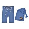 NewBorn Photo Outfit Blue Clothes Pants Tailed Hat Crochet Soft Breathable Wood Button Photo Props for Infant Toddlers