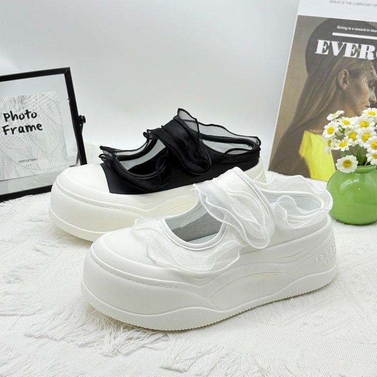 Thick Bottom Heightening Bag Head Half Slippers Women's 2025 Summer New Velcro Mesh Breathable Casual Mary Jane Sandals