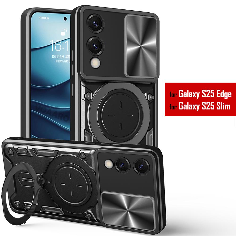 Slide Lens Push Window Armor Funda for Samsung Galaxy S25 Edge 5G Case for Galaxy S25 Slim Case Magnetic Rotate Ring Stand Cover