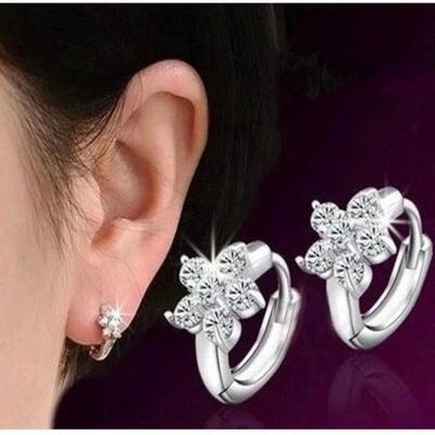 2022 Trendy Zircon Flower Ear Buckle Women Jewelry Temperament Earrings Silver 925 Sterling Hoops Female Birthday Gift