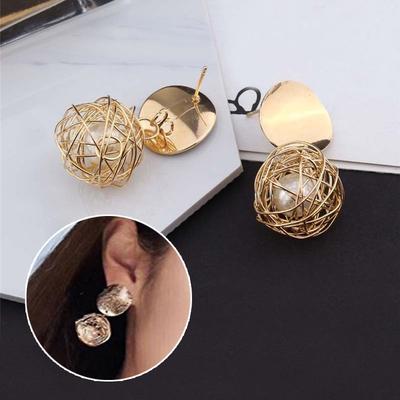 Women Vintage Pearl Earrings Metal Jewelry Woven Ball Earring Stud
