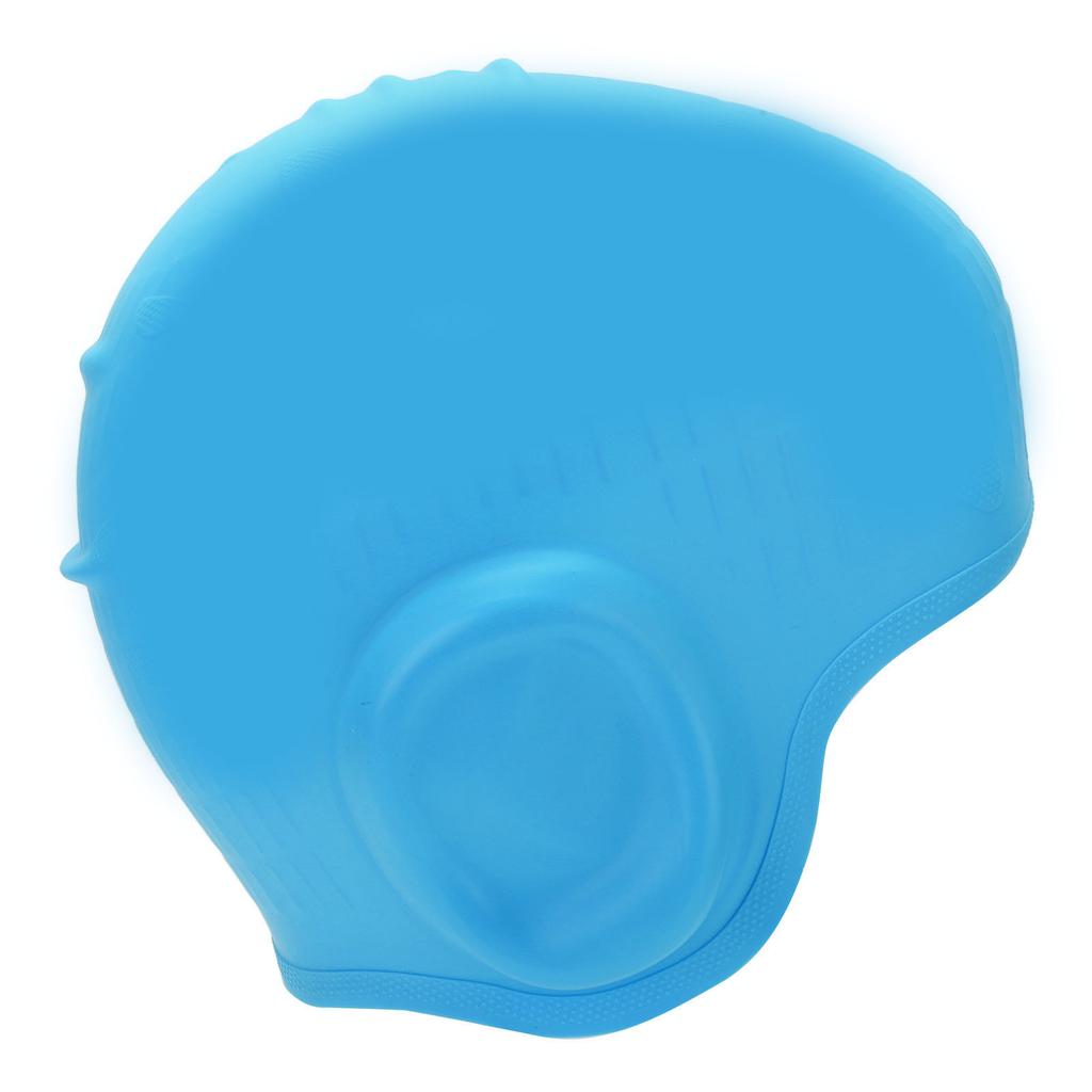 Waterproof Silicone Swimming Cap with Ear Protection 3D Strong Elasticity Long Hair Swimming Hat for AdultsLight Blue