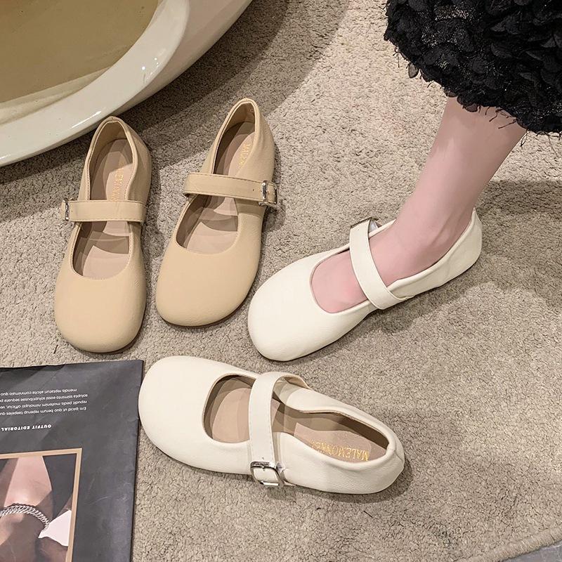 Gentle Wind Mary Jane Shoes Women's Flat-soled Single Shoes Summer 2025 New Shallow Mouth One Pedal with Skirt Small Leather Shoes