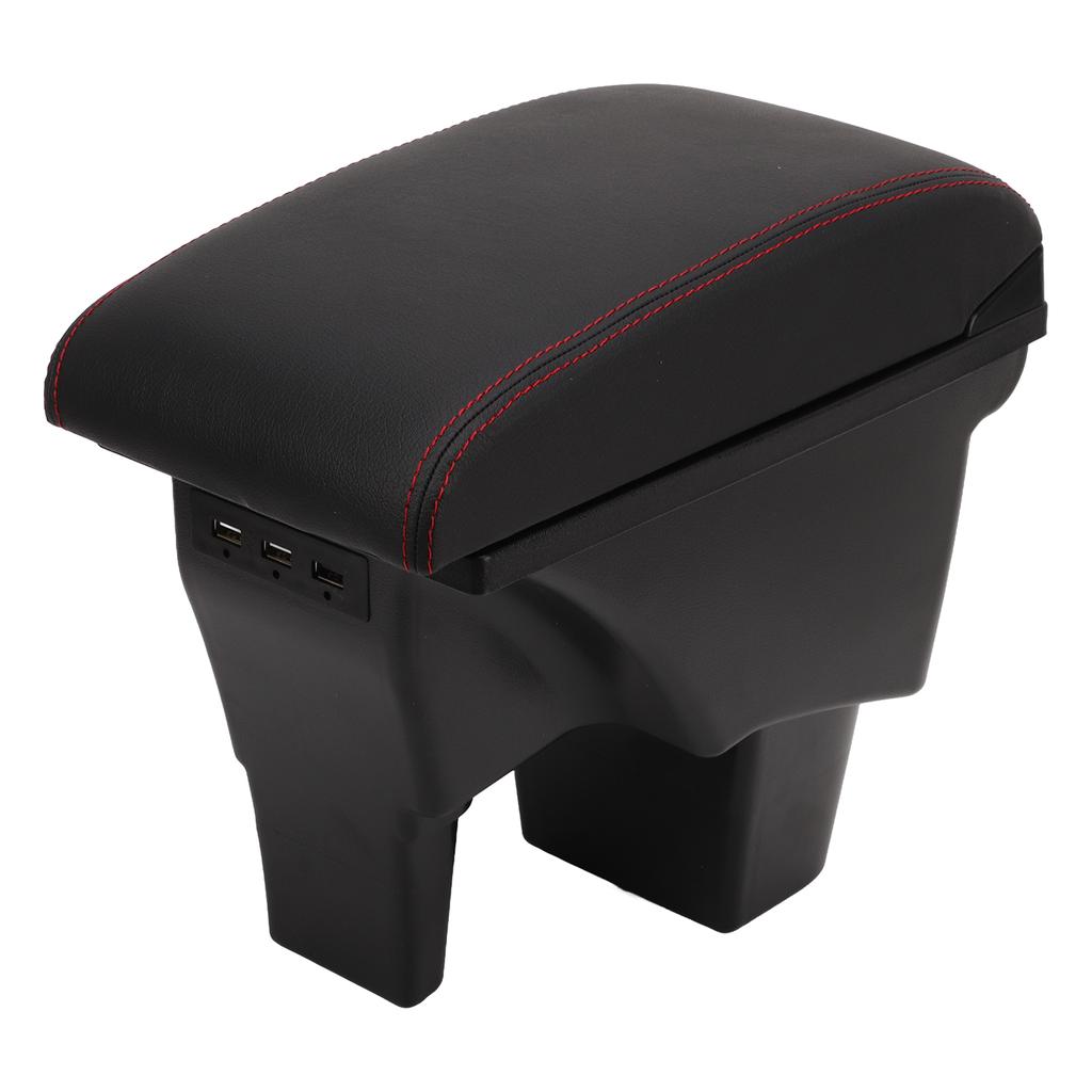 Car Armrest Box Black Central Console Arm Rest Storage Box Red Stitch with USB Interface Replacement for Suzuki VITARA
