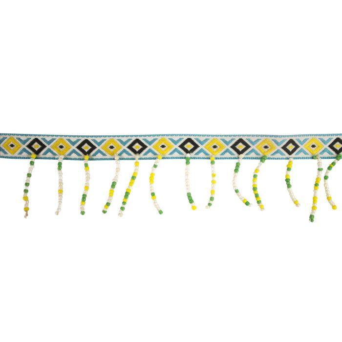 MégaCréa DIY - Blue Printed Ribbon With Pompoms and Seed Beads Wide. 15mm