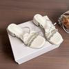 2025 Shiny Silver High Heel Sandals Women's Outdoor Wear French Open Toe Fairy Style Thick Heel Slippers Round Toe Polyurethane
