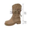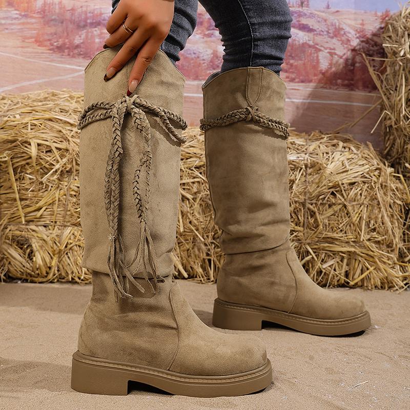 Braided Tassel Western Boots for Women Vintage Faux Suede Chunky Heel Long Boots Woman Autumn Winter Knee High Botas Mujer 2025