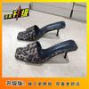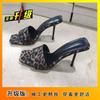 Fashion Leopard Print Word with Sandals Women 2025 New Spice Girl Sexy Open-toed High Heels Temperament Square Head Cool Slippers