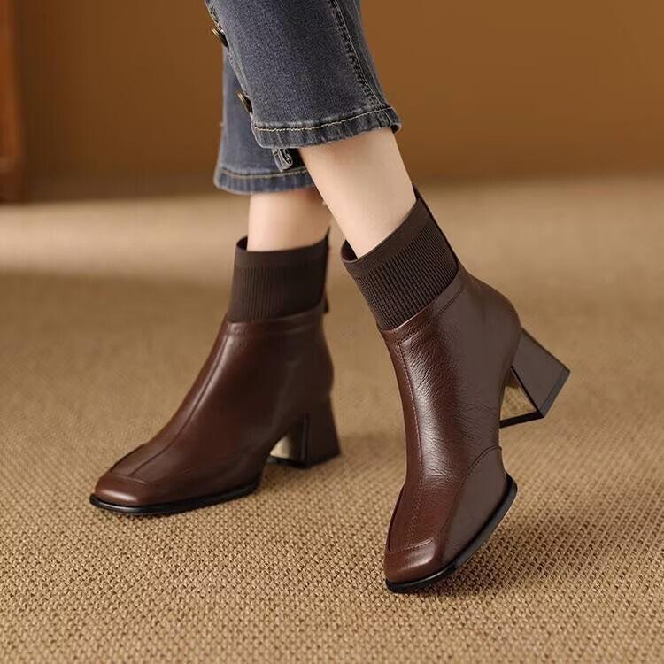 French Retro Autumn and Winter Knitted Small Short Boots Women's 2025 New Thick Heel Square Head Martin Boots Popular Thin Cotton Boots