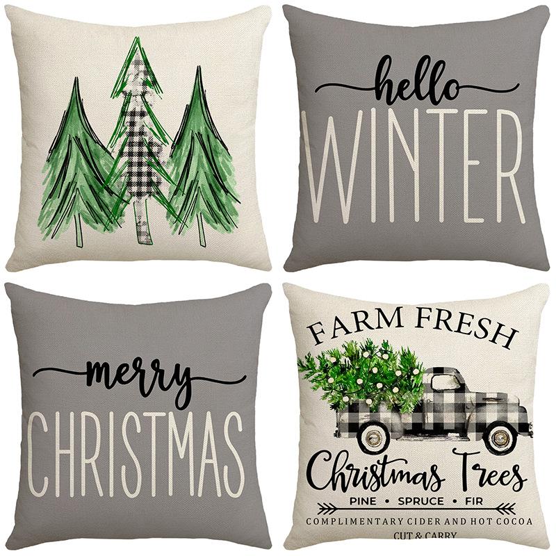 New Christmas Pillow Christmas Tree Farm Car Plaid Home Cushion Pillow Cover