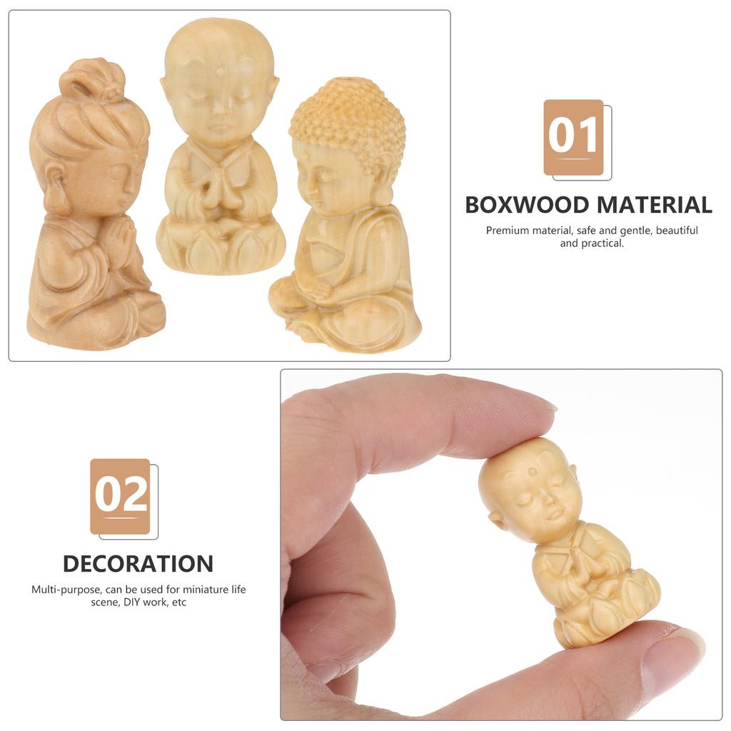 3Pcs Buddha Avalokitesvara Mini Statue Set Hand Carving Figurines for Zen Home Office Decoration Flower Pot Micro Decoration