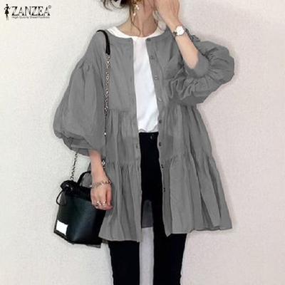 ZANZEA Women Casual Round Neck Loose Puff Long Sleeve Blouse