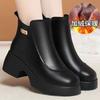Thick-soled Short Boots Women's New Mother Warm Shoes Autumn and Winter Piled Thickened Leather Shoes Muffin Bottom Cold-proof Martin Boots