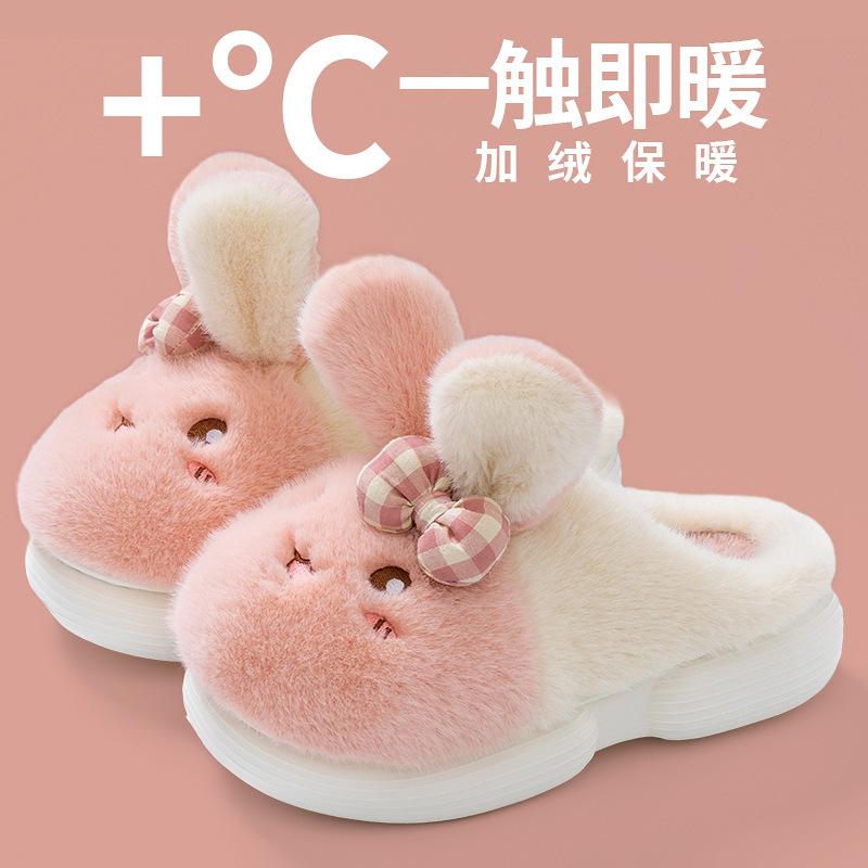 Cartoon Rabbit Cotton Slippers Winter Non-slip Wear-resistant Soft Bottom Indoor Home Velvet Thermal Cotton Slippers
