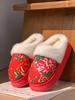 Northeast Big Flower Padded Jacket Wind Warm Cotton Slippers Winter Velvet Warm Non-slip Thick Bottom Home Indoor Plush Cotton Shoes