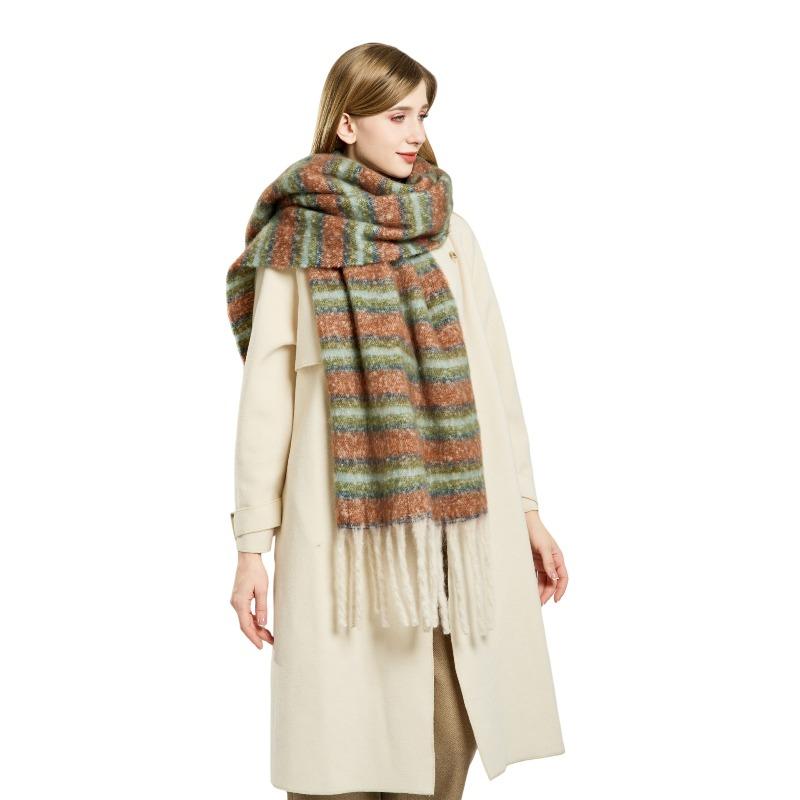 Mohair Winter Striped Scarf Women's Warm Color Matching Imitation Cashmere Advanced Sense Thickened Scarf Versatile Fashion Shawl