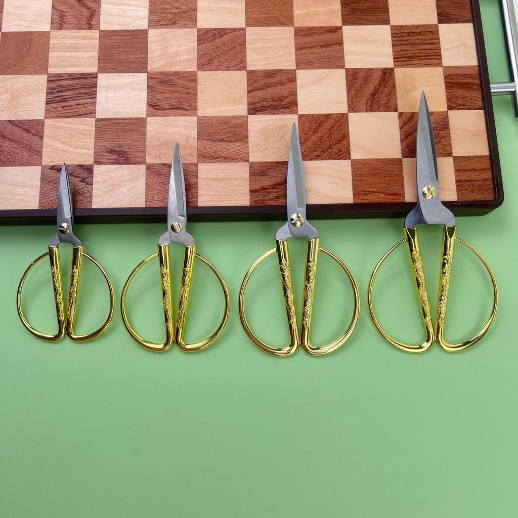 Gold Stainless Steel Dragon and Phoenix Ribbon Cutting Scissors with Zinc Alloy Handle - Tailor Wedding Gift