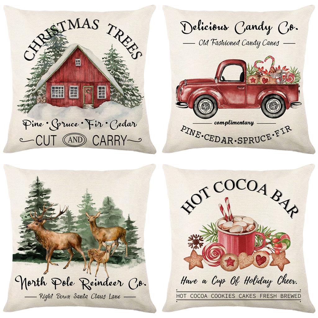 Christmas Elk Print Pillow Cover Home Living Room Sofa Cushion Cover Christmas Tree Elk Cushion