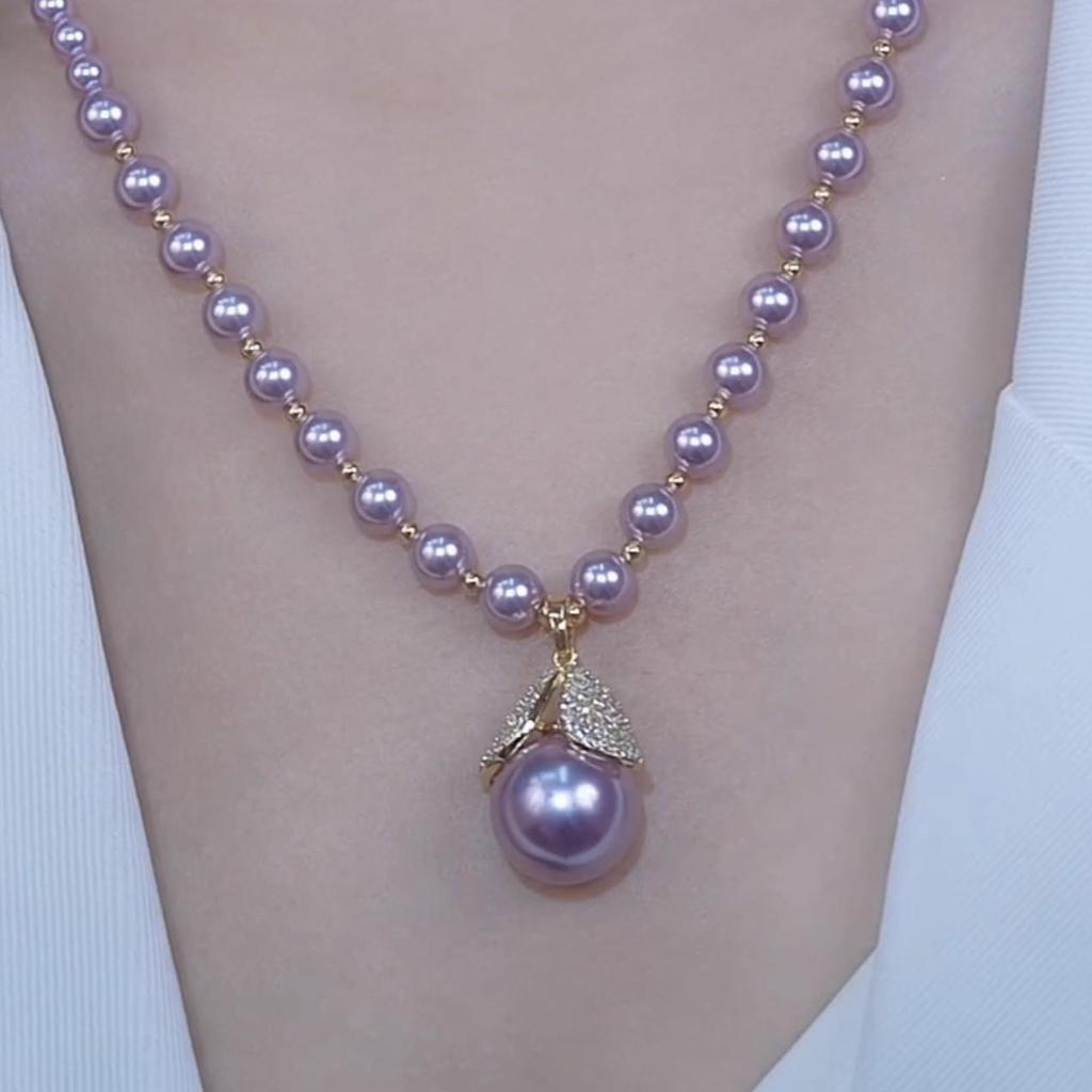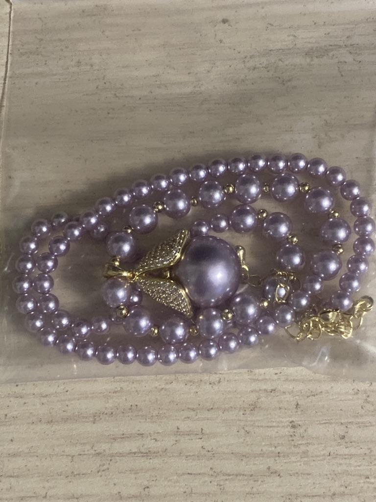 The color is not purple, but pale lilac. But it's still a pretty necklace.