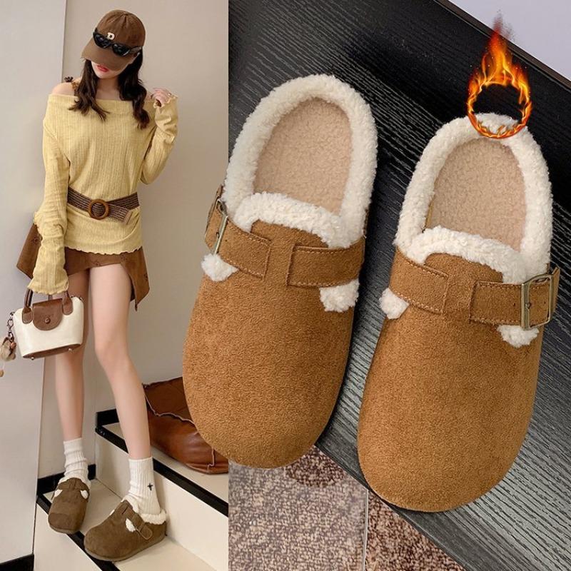 Thick-bottomed Bag Head Tow Women's New Winter Fashion Versatile Velvet Short Boots Warm Fluffy Bread Cotton Tow
