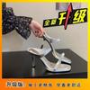Premium Silver Square Head High-heeled Sandals Girl 2025 Summer New Thick-soled Stiletto Fairy Muller Shoes One-word Slippers