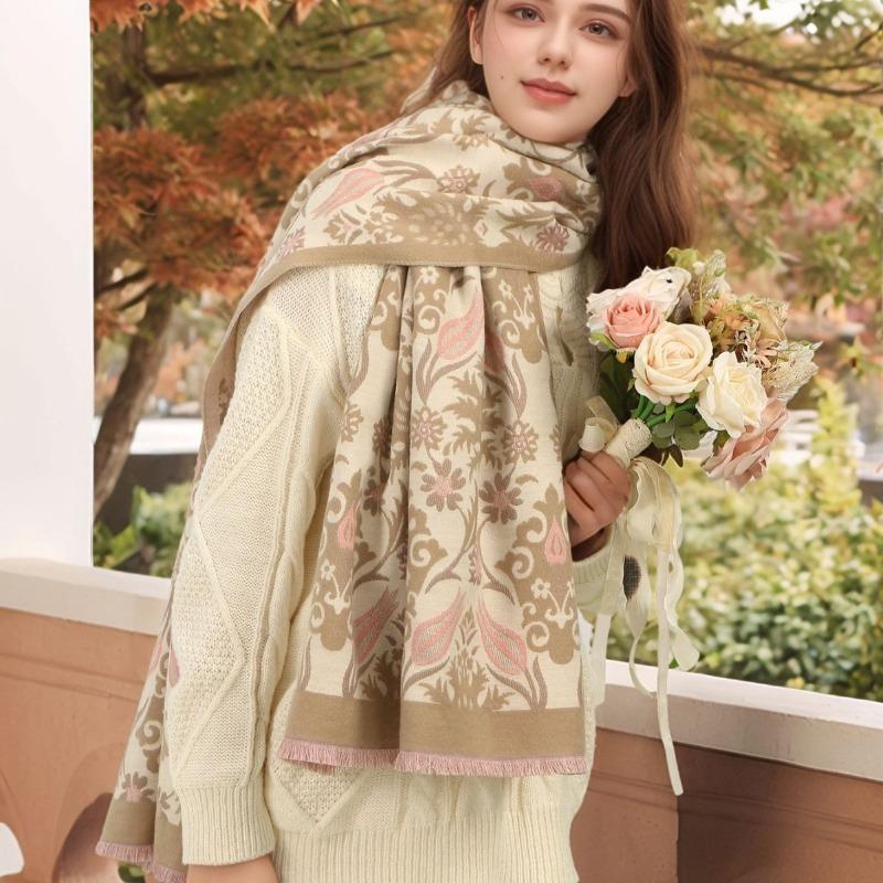 Landscape Painting Imitation Cashmere Scarf Autumn and Winter Fashion Long Thickened Fringed Scarf Warm Shawl Women