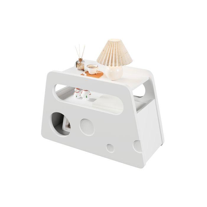 Table d'appoint - Blanche - Design rond - Mobile sur roulettes - Idéale pour petits espaces