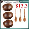 Coconut Bowl Set Natural Handmade Coconut Shell Tableware Wood Spoon Dessert Fruit Salad Mixing Rice Ramen Wooden Bamboo Bowl