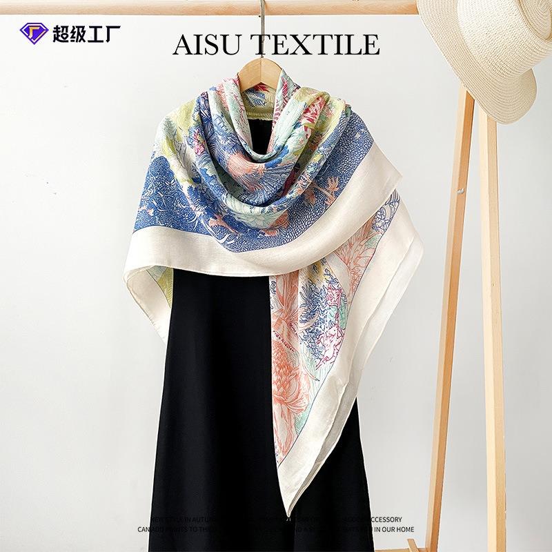 Spring and Summer Thin Imitation Cotton and Linen Shawl, Travel Photo, Color Printed Scarf, Air-conditioned Room Large Square Scarf
