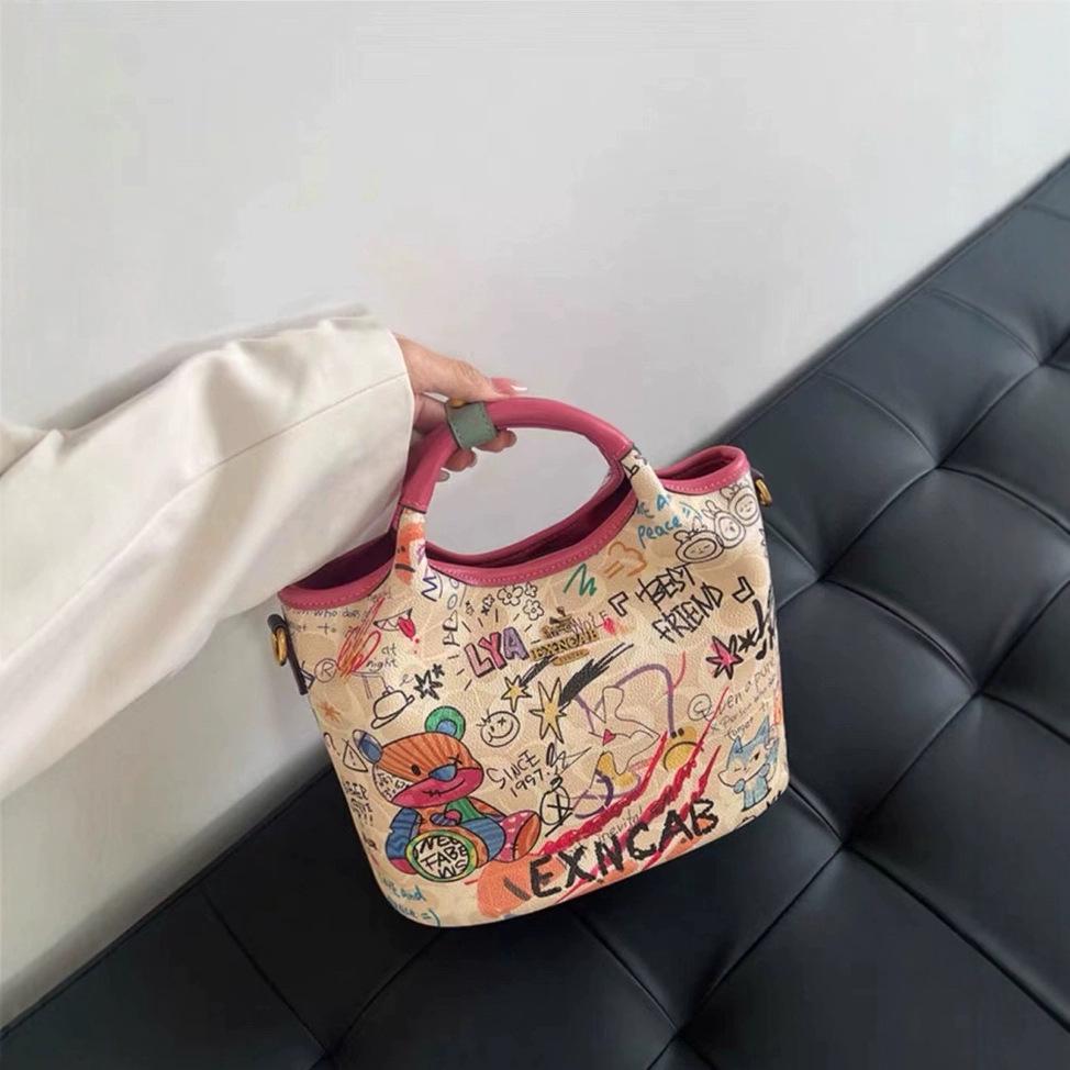 Graffiti Color Block Bucket Bag - Women's 2025 Trend, Large Capacity, Crossbody/Shoulder Style