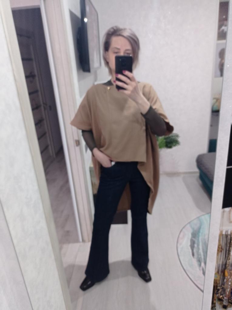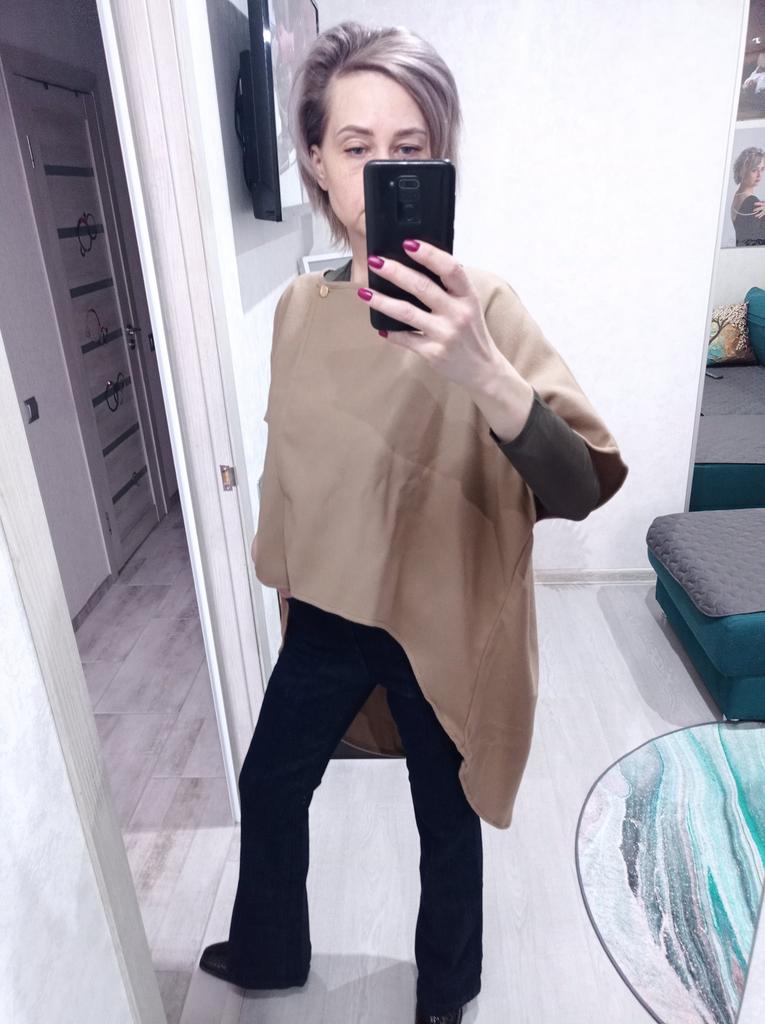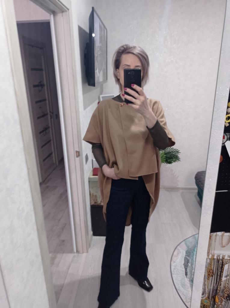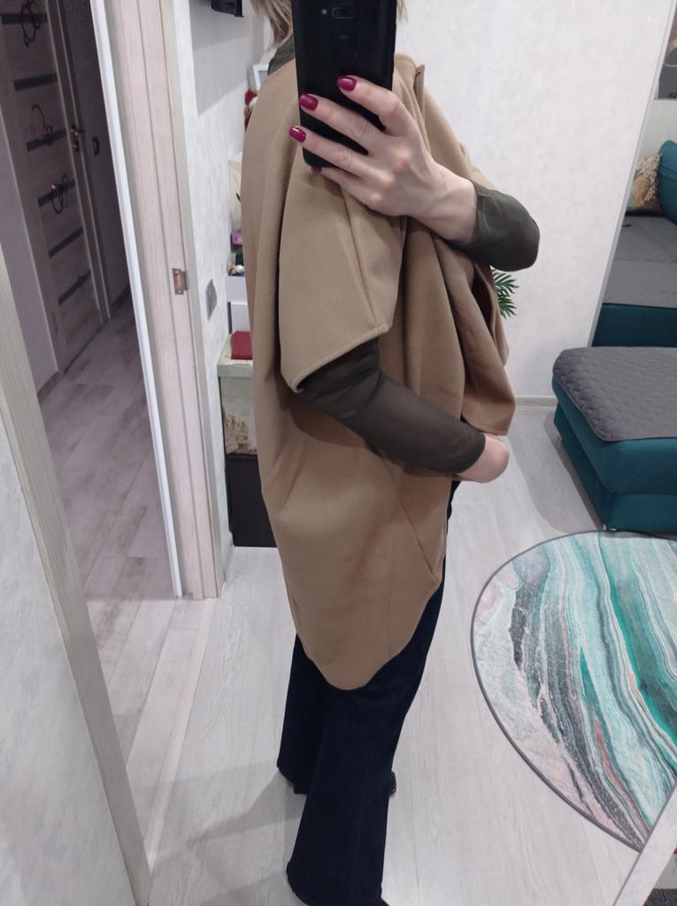 This is not a coat, at most a cape The quality is not bad, sewn neatly For warm summer evenings I wear 44-46 and it's really loose Bought it for the model, exceeded expectations Thank you