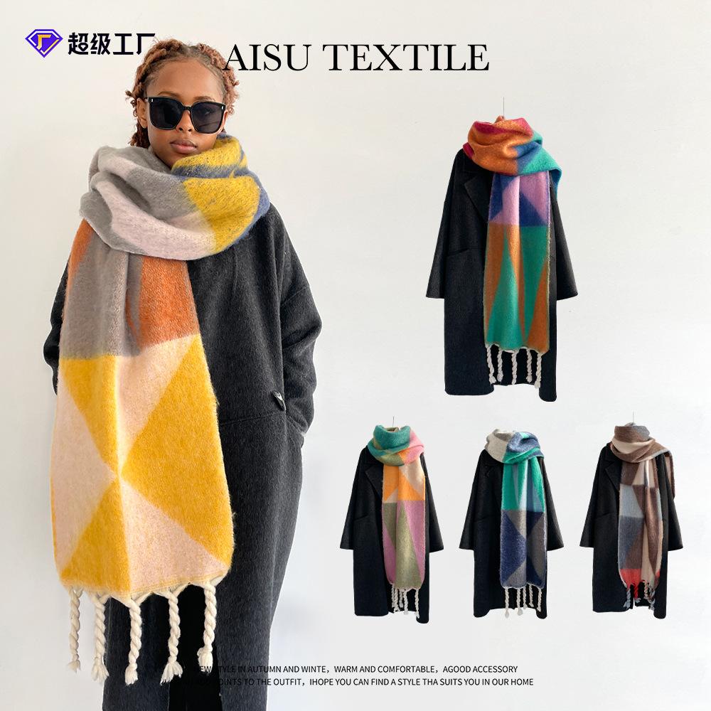 Classic Geometric Triangular Seahorse Hair Scarf Women's Winter Warmth Advanced Sense Hand-rubbed Beard Long Fringed Scarf