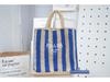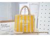 Striped Handmade Straw Tote with Letter Embroidery - Casual Beach Travel Bag