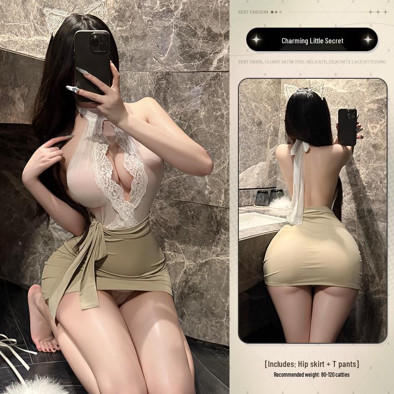 Sexy Lingerie A-line High Waist Lace Bodycon Pencil Skirt for Women
