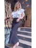 2024 Summer European & American Fashion Solid Color Ruffle Sleeve Top & High Waist Hip Wrap Skirt Set for Women