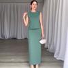 2024 Summer Women's Solid Color Round Neck Casual Two-piece Set Skirt
