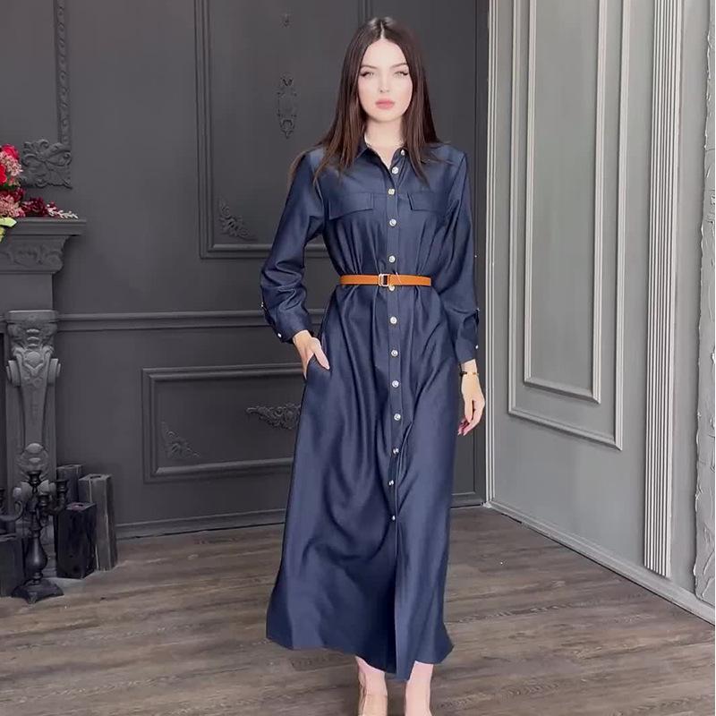 2024 Autumn European and American Women's Solid Color Turn-down Collar Multi-button Shirt Dress