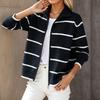 Women's 2025 Fall/Winter Color Block Striped Knitted Zip-up Cardigan with Turn-down Collar