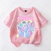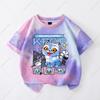 Kawaii KPop Demon Hunters Tie-dye T-shirt Girls Short Sleeve Tops Rumi Mira Zoey Printed Tee Shirts Summer Children's Clothing