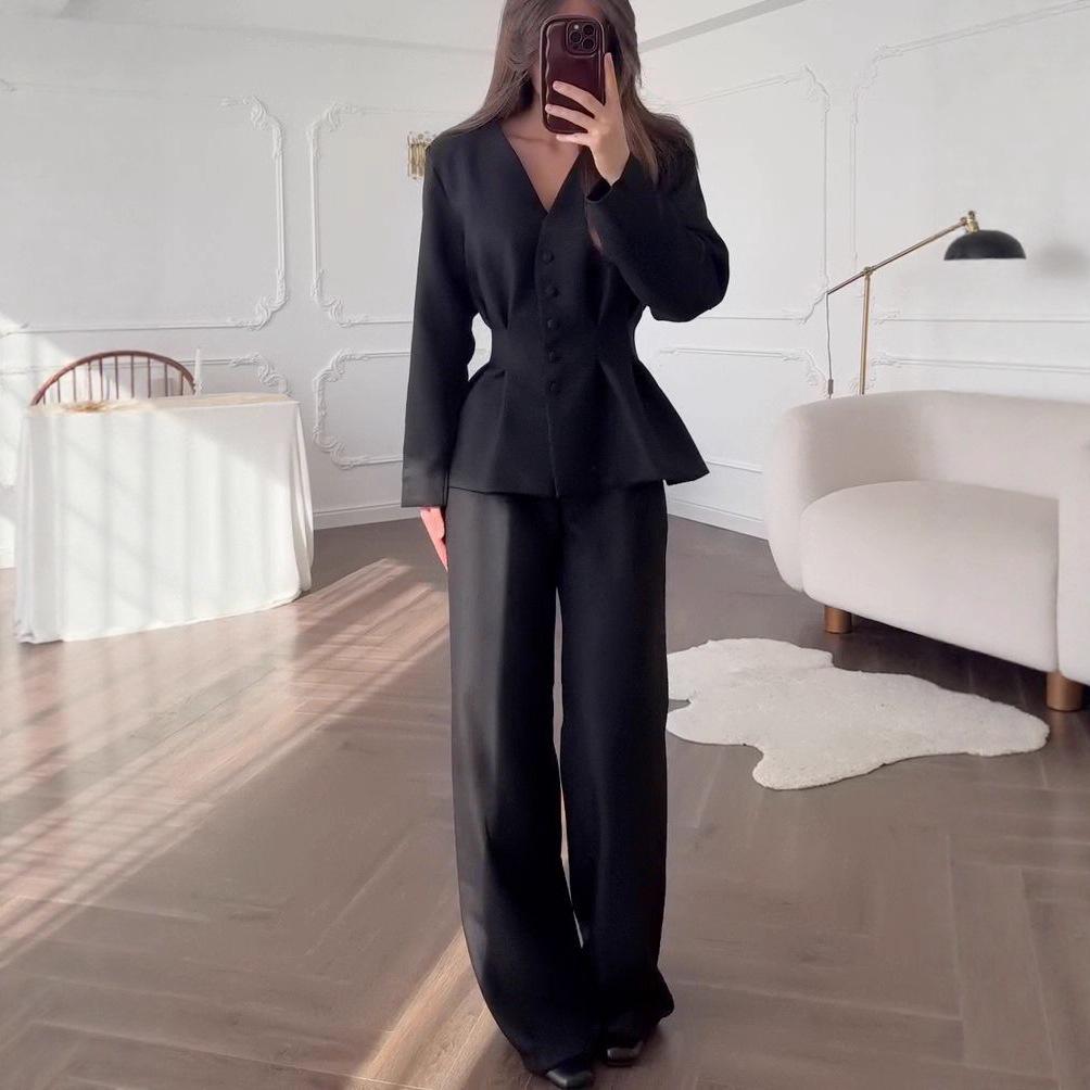 Discover the chic and contemporary elegance of this women's pant suit, perfect for autumn 2025. The ensemble features a V-neck design, creating a flattering neckline, while the slim fit accentuates the silhouette with a modern flair. Crafted from high-quality polyester, this outfit ensures both comfort and durability. The solid pattern provides a clean and sophisticated look, ideal for those who appreciate minimalism. Accompanied by a waist-cinching long coat, this pant suit effortlessly combines style and functionality. Whether you're attending a business meeting or a casual outing, this sportive style suit offers versatility and a touch of European and American sophistication.