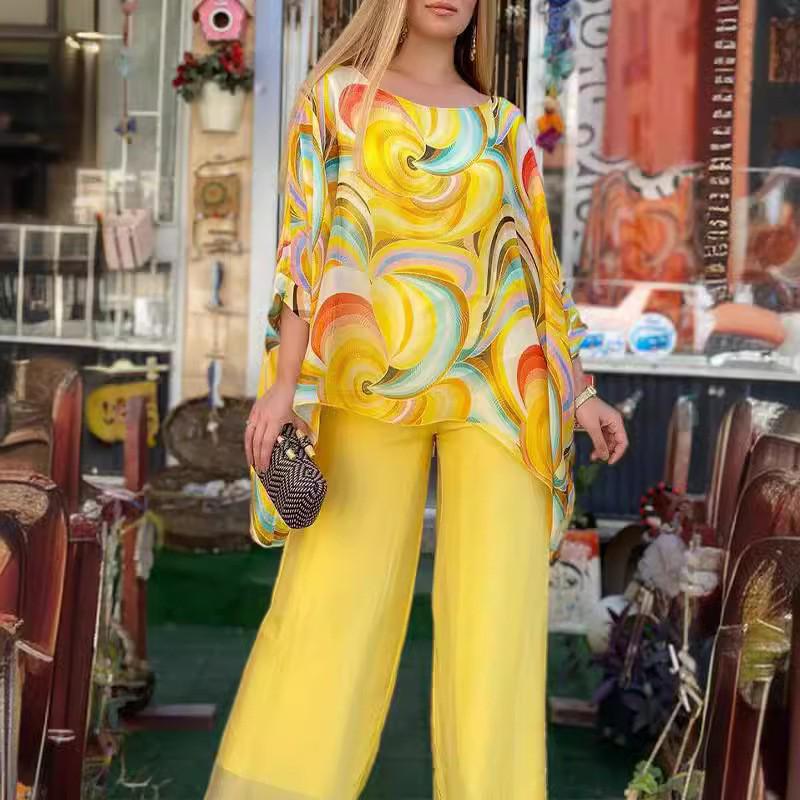 Elevate your summer wardrobe with this delightful two-piece set, crafted from breezy chiffon fabric for a lightweight feel. The ensemble features a vibrant floral pattern that captures the essence of the season, enhanced with intricate embroidery for added charm. The casual style is perfect for warm weather outings, providing both comfort and style. A round neck design adds a touch of elegance to this versatile set, making it a must-have addition to your seasonal collection.
