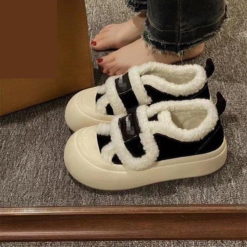 Breadboard Shoes Women's Autumn and Winter New Velvet Warm Niche Design Casual Shoes Velcro Cotton Shoes