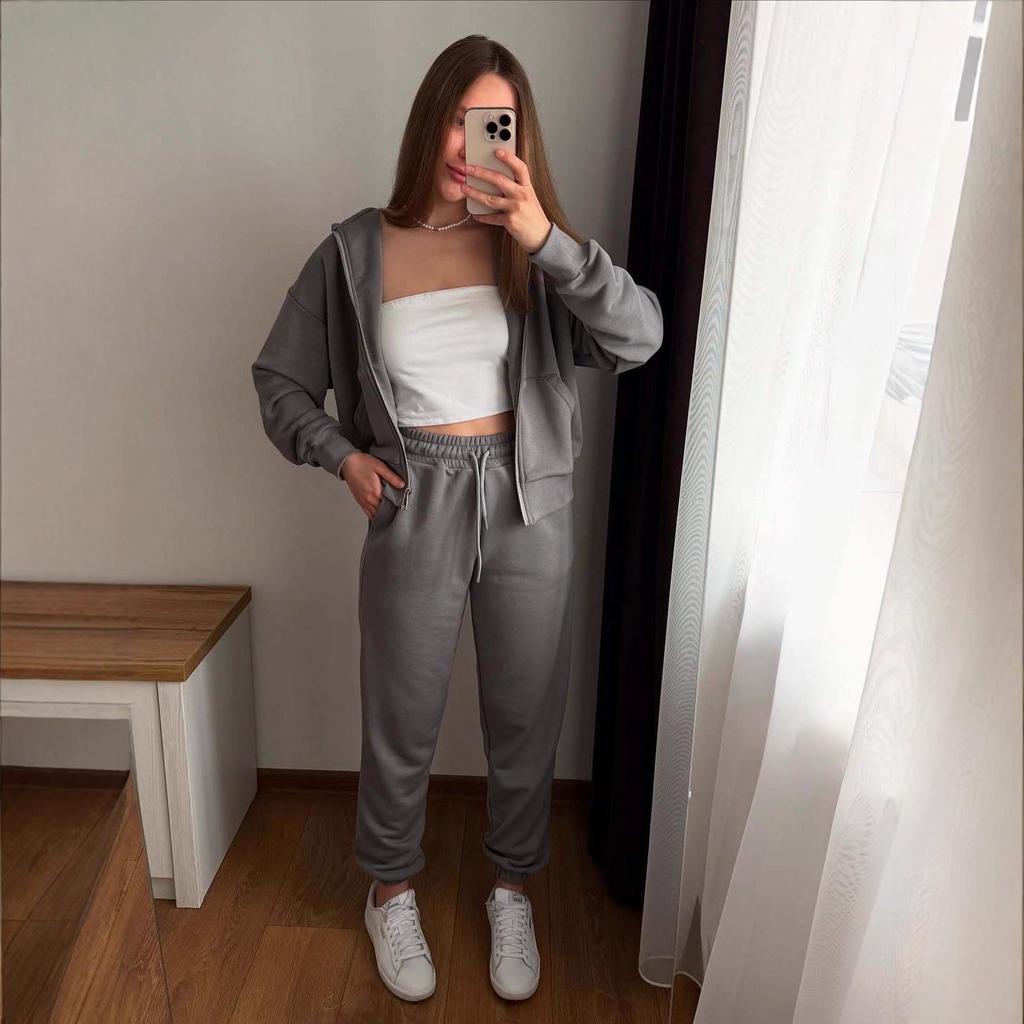 2025 Autumn Women's Sleeveless Lined Jacket and Loose Pants Set - European & American Sports Style