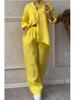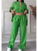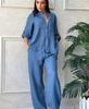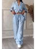 2024 Women's Solid Color Single-Breasted Long Sleeve Shirt & Wide Leg Tie Pants Set