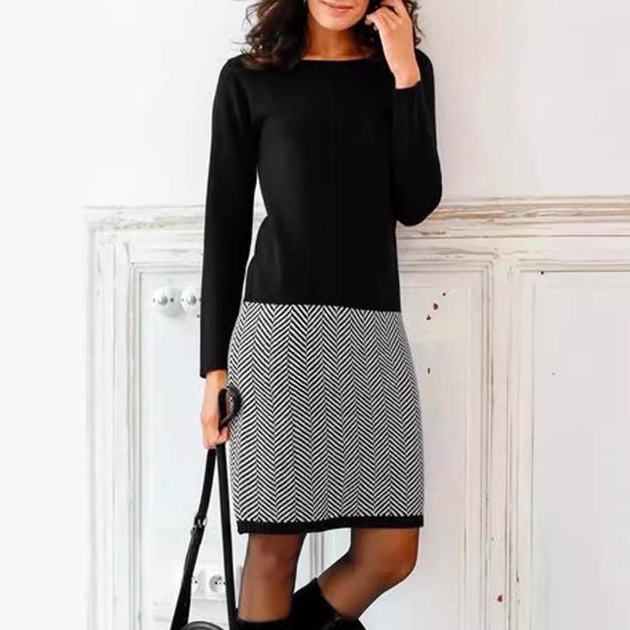 Embrace the elegance of autumn and winter with this slim-fitting houndstooth patchwork dress. Crafted from a blend of high-quality cotton and polyester, it offers both comfort and style. The classic houndstooth pattern is combined with fashionable patchwork detailing, making it a versatile choice for any occasion. Whether you're heading to an office party or a casual gathering with friends, this dress promises to keep you looking chic and sophisticated throughout the colder seasons.